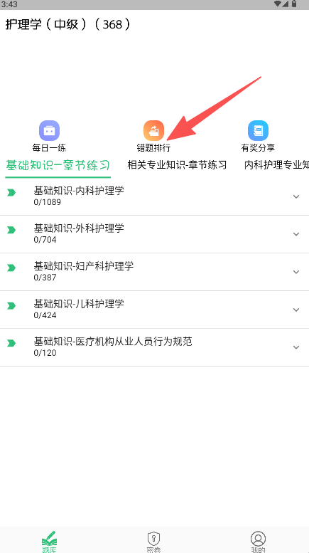 1、在主頁點擊中部功能區的“錯題排行”按鈕進入頁面。