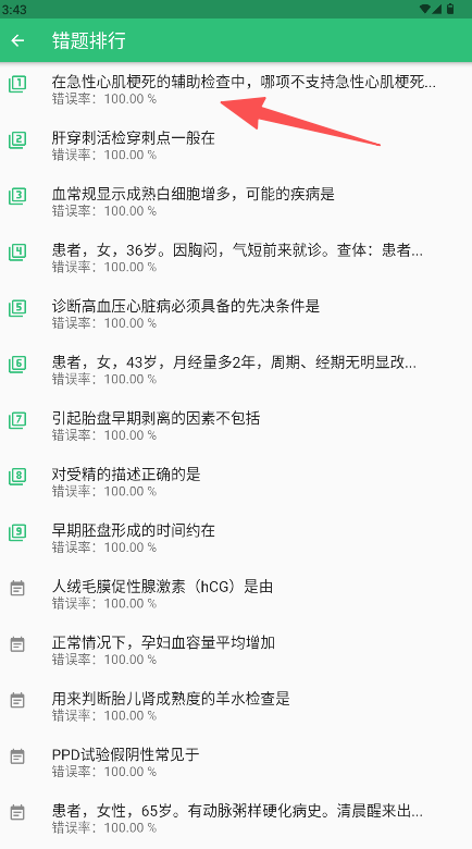 2、頁面將按錯誤率從高到低列出所有題目,點擊其中任意一題。