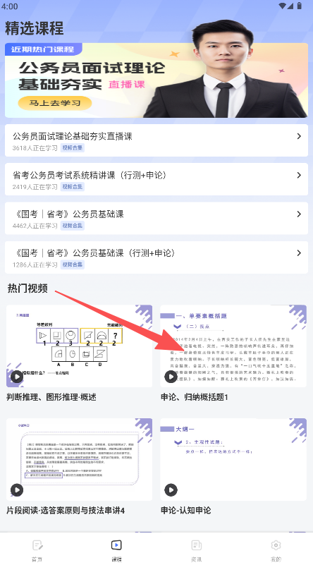 2、在“熱門視頻”區(qū)域找到并點(diǎn)擊目標(biāo)課程進(jìn)入其詳情頁(yè)。