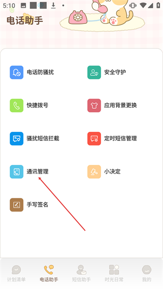 1、在電話助手頁面,點擊【通訊管理】選項可進入通訊管理頁面。