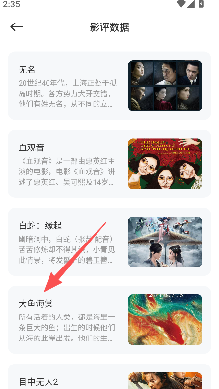 3、具備影視信息查看功能,在影評數據點擊目標電影,進入詳情頁查看導演劇情等信息。