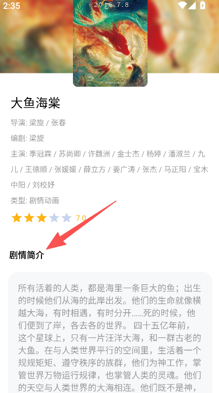 3、點擊目標電影進入詳情頁查看劇情簡介等內容。