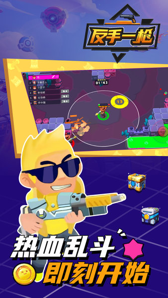 反手一槍最新版采用的是卡通游戲畫風,玩家在游戲中能夠聯機和其他玩家展開全新的大亂斗槍戰對決,游戲為玩家們提供了多樣化的人物選擇,并且擁有豐富的槍械。