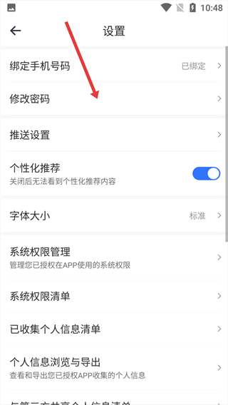 3、在設(shè)置界面,選擇“修改密碼”選項(xiàng)。
