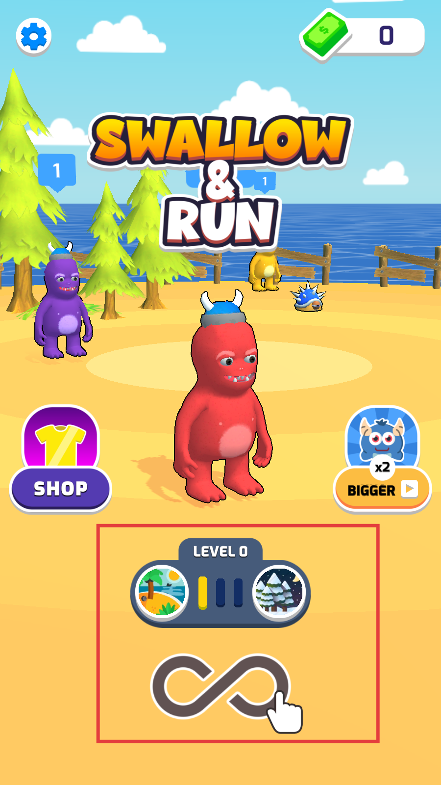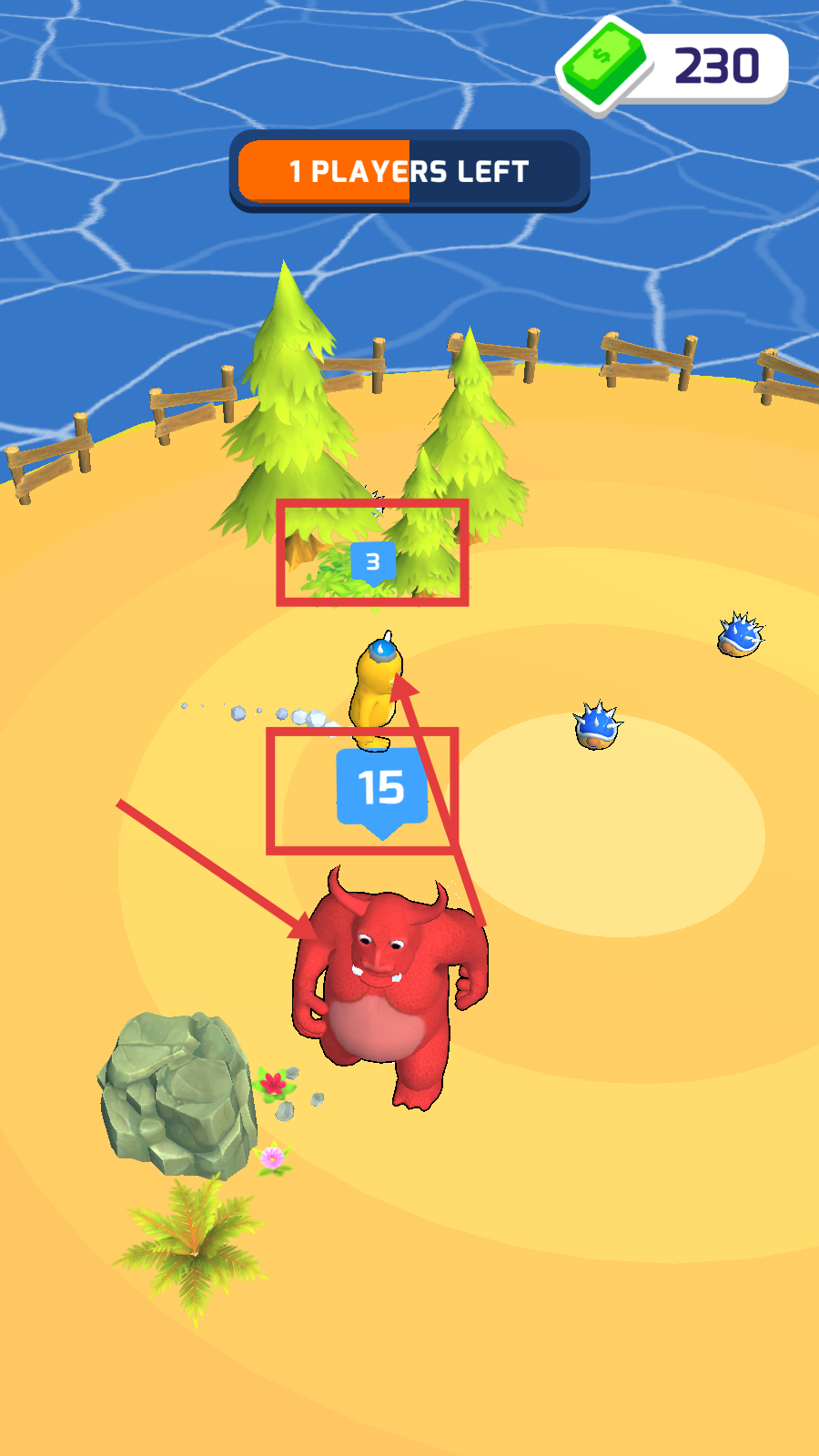 3、持續吞吃小怪物后,紅色角色達到更高的等級會變更強。