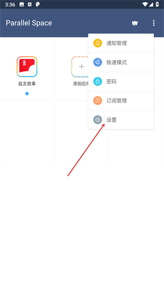 1、打開(kāi)平行空間應(yīng)用,點(diǎn)擊右上角三點(diǎn)菜單按鈕。