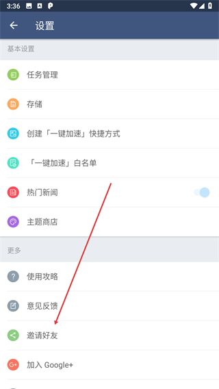 3、在設(shè)置頁(yè)面的更多分類(lèi)下,選擇邀請(qǐng)好友選項(xiàng)。