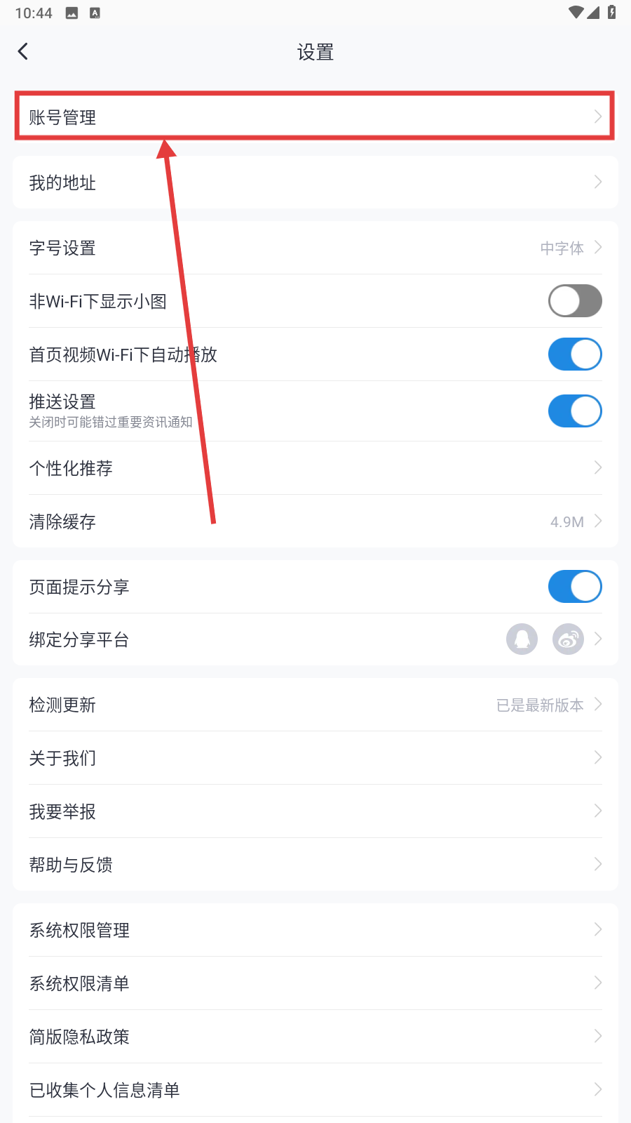 2、在設置界面里,我們找到并點擊最上方的【賬號管理】選項,進入賬號相關的操作頁面哦。