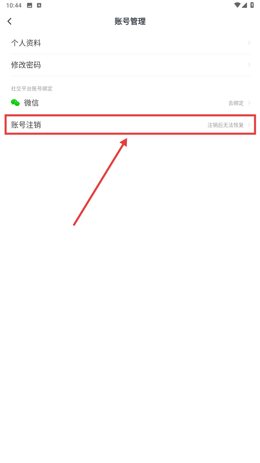3、進入賬號管理后,我們看到【賬號注銷】選項,點擊它就能進入注銷流程啦,要注意注銷后無法恢復喲。