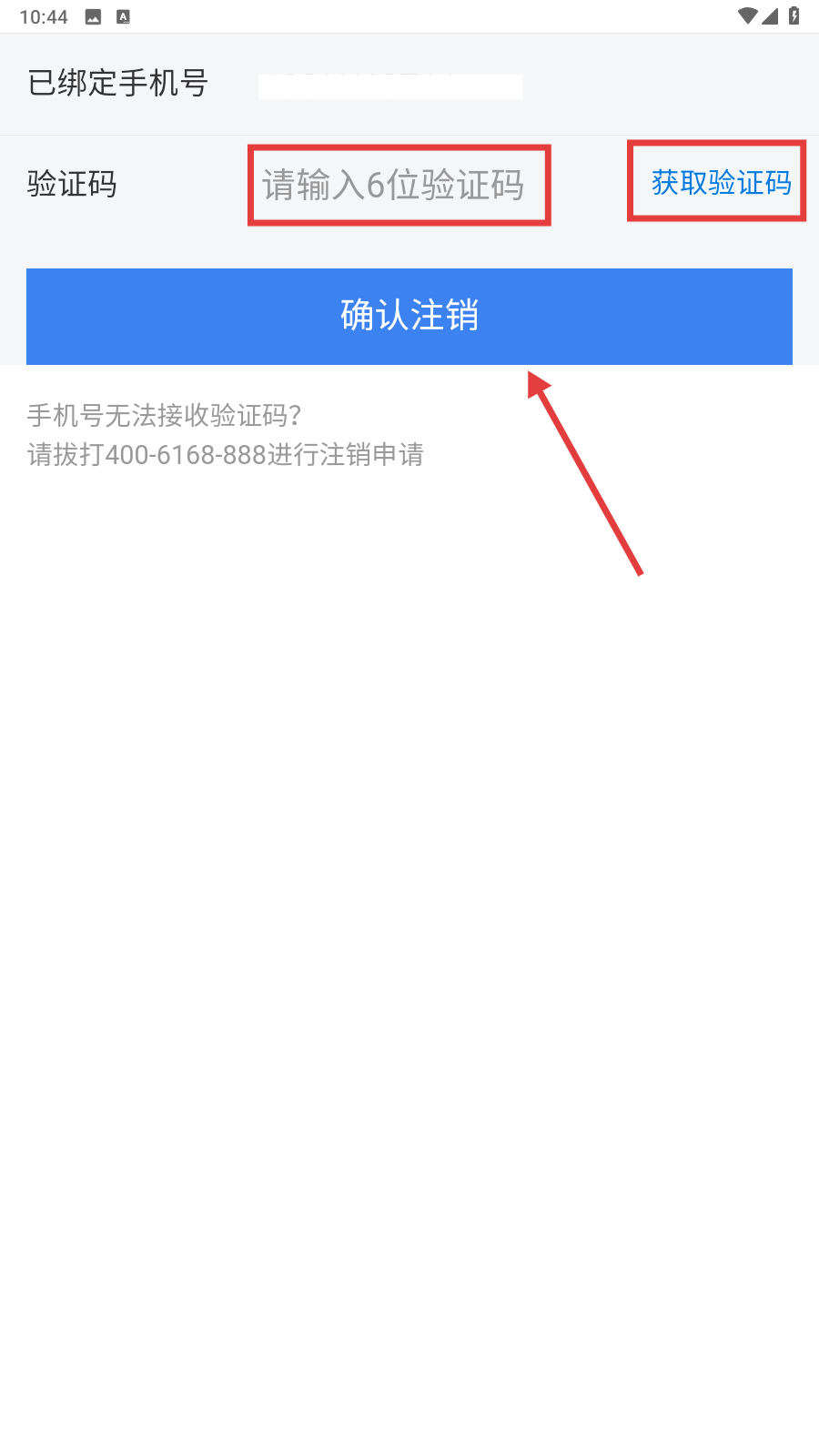 4、在注銷頁面,我們先點擊【獲取驗證碼】,然后在輸入框中填入6位驗證碼,最后點擊【確認注銷】,這樣就完成賬號注銷啦。
