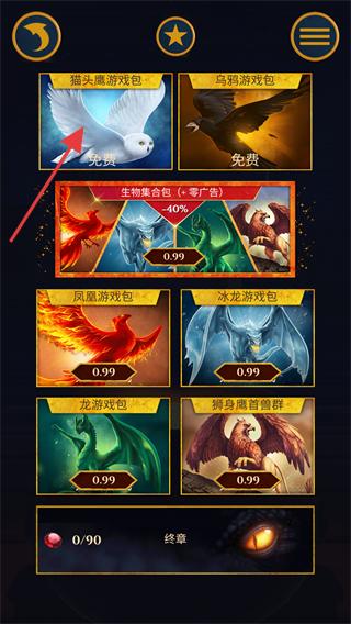 2、在道具界面選擇【貓頭鷹游戲包】(免費),獲取對應的貓頭鷹相關道具,推進游戲。