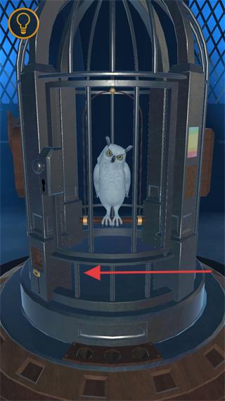 3、進入鳥籠場景后,觀察籠內的白色貓頭鷹,移動視角或操作界面,探索鳥籠的交互區域。