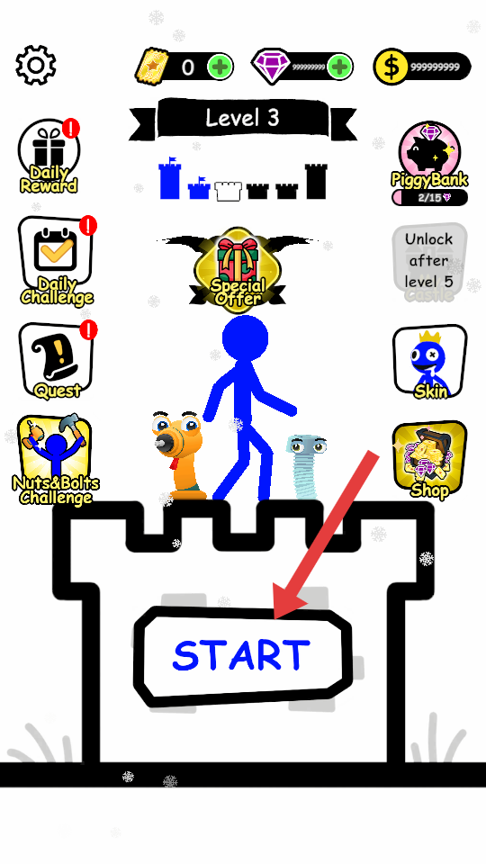 1、進入游戲主界面后,點擊【START】按鈕進入關卡。