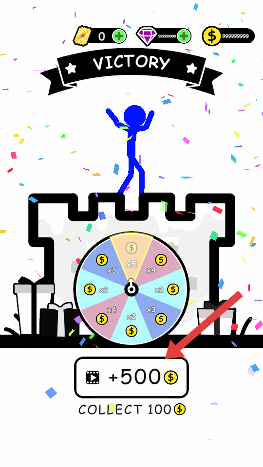 4、成功通關后,點擊【+500】可直接免廣告領取金幣獎勵。