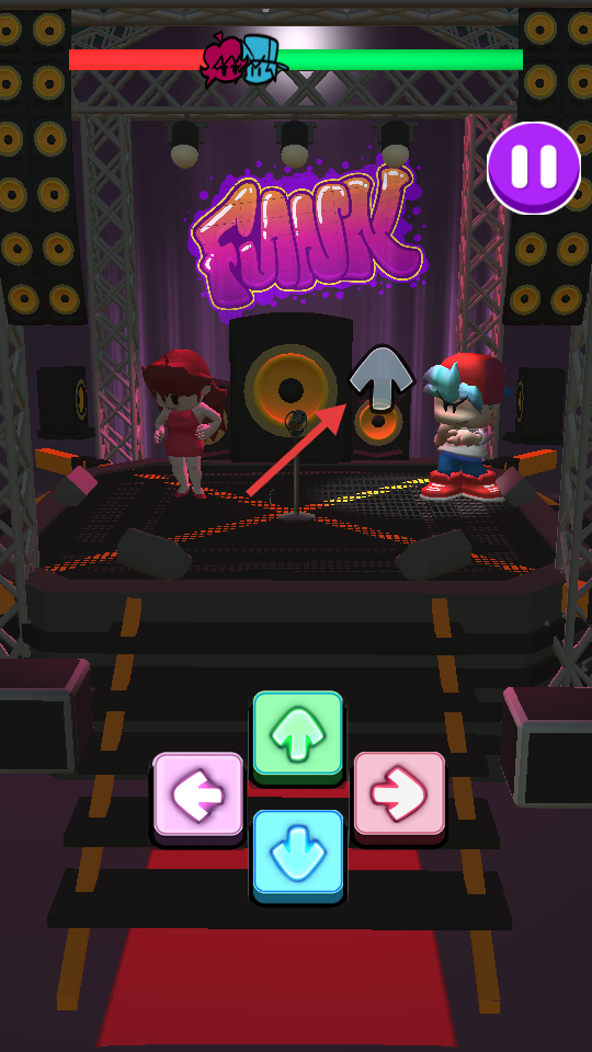 2、跟隨音樂節奏,當上方出現方向箭頭時,點擊下方對應方向鍵。