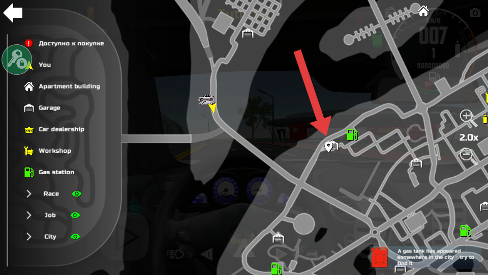 4、打開地圖后,根據紅色箭頭指引前往目標點,無限金幣助力你在城市中自由駕駛探索各類區域。