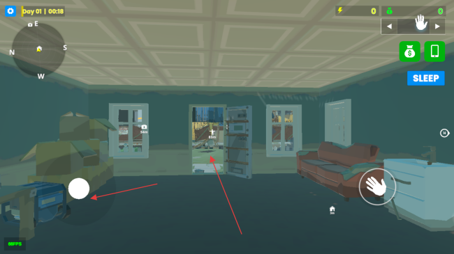 1、在室內場景,操控角色移動,留意打開的門,準備前往室外探索。
