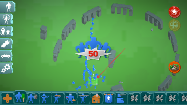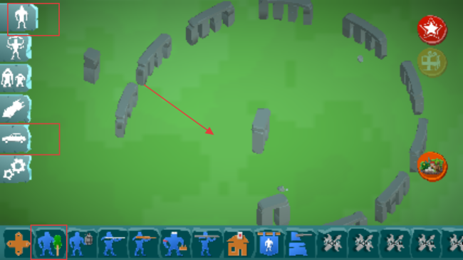 2、在游戲場景中,左側有多種兵種和道具選項,可選擇合適的兵種,將其部署到場景中的合適位置,為戰斗做準備。