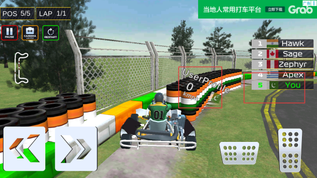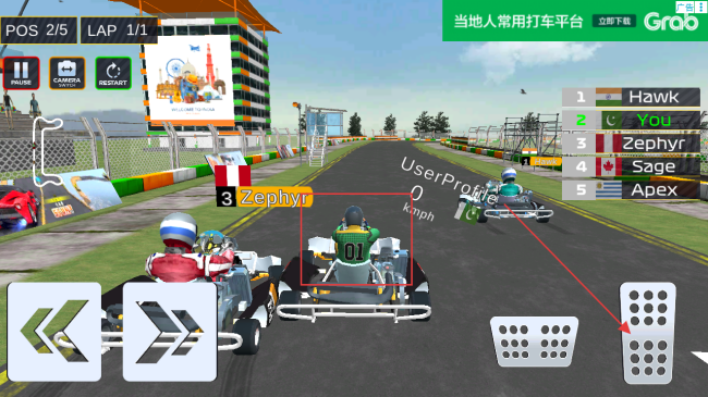 2、比賽開始后,利用右側(cè)加速按鍵提升速度,同時(shí)通過左側(cè)方向按鍵控制方向,在賽道上靈活行駛,嘗試超越前方對(duì)手。