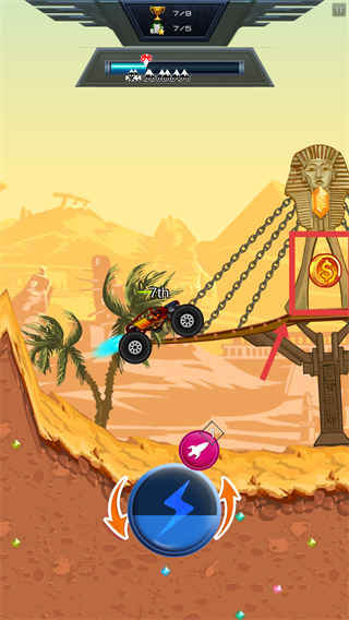 2、行駛中,通過(guò)操作讓車輛收集金幣,提升資源獲取,同時(shí)注意賽道障礙與對(duì)手。