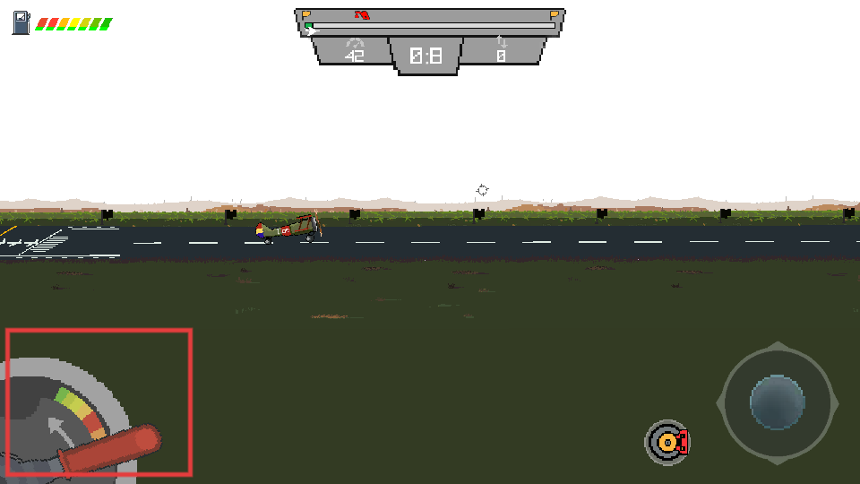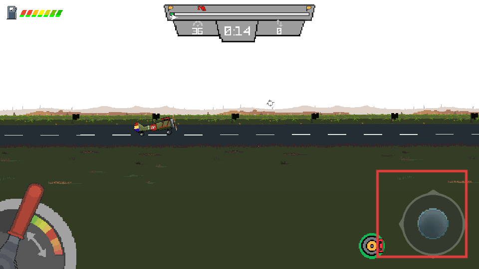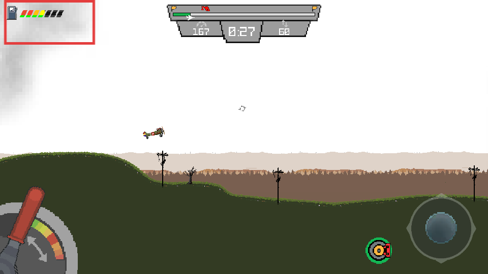 3、讓飛機(jī)升空飛行,關(guān)注左上角的狀態(tài)條,保持飛機(jī)穩(wěn)定,避開途中的障礙物。