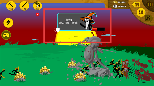 2、戰(zhàn)斗中,消耗資源生產(chǎn)劍士等兵種,借助修改器可快速積累資源,壯大己方戰(zhàn)力。