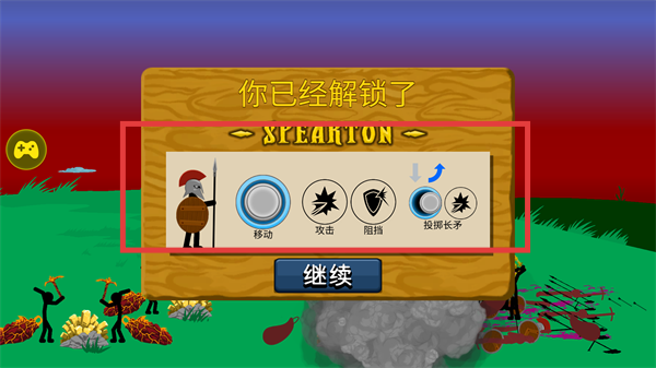 4、解鎖【SPEARION】單位,查看其【移動(dòng)】【攻擊】等操作說明,點(diǎn)擊【繼續(xù)】熟悉新單位。